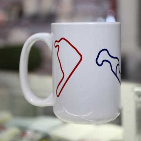 15-ounce mug with all your favorite Summit Point Motorsports tracks on it -- Summit Main, Shenandoah, and Jefferson!